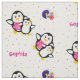 Um impressão tão bonito com estilo cartoon mãe e pinguins bebês sobre um fundo de manchas coloridas de bolinhas e posições distantes de flores. Um tecido brilhante disponível numa escolha de estilos e comprimentos de tecido para satisfazer todas as suas necessidades de artesanato e costura. O melhor de tudo é personalizá-lo com um nome pessoal.