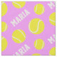 Tênis racquet sport repete o tecido de design personalizado com padrão de bola de tênis. bolas de tênis amarelas e brancas sobre uma cor de fundo rosa que pode ser alterada se necessário. Ideal para fãs de badminton. Personalize com sua própria escolha de nome, lê Maria. Arte e projetada por Sarah Trett para www.mylittleeden.com