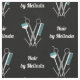 tecido preto para cabeleireiro ou cabeleireiro com um par de tesouras, um pente, uma escova de corante e um par de pinos de cor branca com detalhes de cor. Adicione seu nome de negócios em um roteiro ousado e moderno.