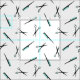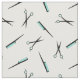 Branco do tecido com um teste padrão moderno das tesouras e dos pentes no preto e na turquesa.