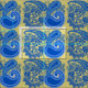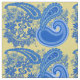 Tradicional e ao mesmo tempo moderno. Teste padrão azul brilhante de paisley e de flores em um fundo do amarelo dourado.