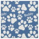 O costume adorável personalizou o tecido para seu cão de estimação, ou o todo o animal com as patas para essa matéria. Uma disposição de pawprints dispersados aleatòria aproximadamente, com o nome de seu costume de quatro patas peludo do amigo impresso por toda parte. O impressão azul e branco austero do teste padrão da escala média é grande para artesanatos e camas diy do cachorrinho do fazer, travesseiros do filhote de cachorro, lenços do animal de estimação ou o que quer que você quer!