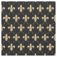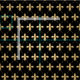 Tecido dourado da flor de lis com as flores no fundo preto.