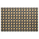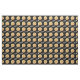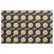 Este tecido caracteriza um teste padrão de pizzas de pepperoni contra um fundo preto.
