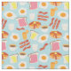 Os grampos do pequeno almoço como o presunto, o sumo de laranja, um ovo do estrelado, o brinde, o café, e o bacon compo este teste padrão ilustrado delicioso.