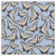 Este tecido é perfeito para fãs da borboleta. Caracteriza all over um teste padrão de borboletas amarelas do swallowtail do tigre contra um fundo dos azul-céu. As ilustrações da borboleta têm um estilo simples, realístico. As borboletas amarelos pálido e pretas estão para fora agradàvel contra a luz - fundo azul.