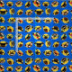 Nosso teste padrão Pugnacious de Emoji do pug dos presentes contem; Amor, LOL, surpresa, beijo, careta, embaraçado e legal. Sew e artesanato o que quer que você quer com nosso tecido de Emoji em azuis marinhos.
