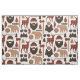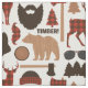Tecido bonito do teste padrão do lenhador: barbas, árvores e animais e machados! Elementos da xadrez do búfalo em marrom e no vermelho. Presente bonito para o seu o lenhador em sua vida.