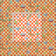 Um desenho do teste padrão dos budgies no estilo bonito do manga com teste padrão alaranjado do verificador para o fundo. Caracterizando muitas cores da mutação do budgie: verde, amarelo, branco, azul, violeta e malva.