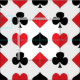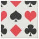 Tecido do divertimento com corações, pás, diamantes, e clubes em vermelho, em preto, e o branco.
