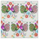 Este é tecido bonito para muitos projetos, incluindo cortinas da cozinha ou qualquer coisa cozinha relativa. Caracteriza um design maravilhoso de dois galos orgulhosos que estão o peito ao peito. Um galo é colorido roxo vermelho, verde, do rosa, e preto, e outro é cor-de-rosa, vermelho e preto. As imagens do galo são moldadas com imagens brilhante coloridas da flor no vermelho, no ouro, no amarelo, no azul, e no verde. Muito colorido, brilhante, e divertimento para o uso ao longo do ano. Seja certo ver nosso design de harmonização da cozinha em nossa loja.
