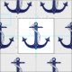 Este tecido temático náutico caracteriza uma repetição de âncoras dos azuis marinhos em um fundo liso. A cor do fundo é cor do tecido.