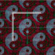 Tecido vermelho e verde vívido do teste padrão do símbolo de yang do yin.