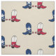 Este tecido tem botas de cowboy com esporas e a bandeira do Texas projetada para ele. A cor de fundo deste tecido pode ser alterada para qualquer cor usando o botão personalizar e o seletor de cores. Este design também está disponível em outros itens na loja de dias de rodeio.