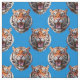 Seamless Repeat Roaring Tiger Head Pattern Design On Blue Background