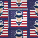 Tecido com uma ilustração do Tio Sam com a bandeira americana como pano de fundo, 4 de julho, design patriótico por Maxi Harmony / Radka Kavalcova; versão azul