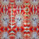 Cabeça de crânio. Gótica colorida, tenda, legal, moderna, com material de costura de padrão vermelho repetitivo. Material de design de cultura de pop de abstrato trippy psicodélico. Imagem copyright Marg Seregelyi Fotografia.