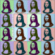 Pop art transparente Mona Lisa ou La Gioconda, por Leonardo da Vinci, com lábios vermelhos e os olhos verdes no estilo do poster vintage