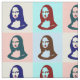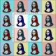 Pop art transparente Mona Lisa ou La Gioconda, por Leonardo da Vinci, com lábios vermelhos e os olhos verdes no estilo do poster vintage