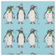 Tecido Três Pinguins Festivos De Natal Em Azul Claro