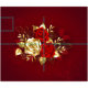 A composição de duas rosas vermelhas pintadas artisticamente e uma rosa ouro, decorada com ouro, folhas de joias sobre fundo texturizado.