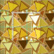 Mosaico geométrico moderno do meio século de triângulos esboçados nas máscaras do amarelo da mostarda e do ouro, luz - amarele e tan, em um tecido morno do fundo do tan do ouro