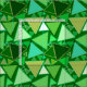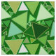 Mosaico geométrico moderno do meio século de triângulos esboçados nas máscaras do verde da esmeralda e de jade, no aqua e em bege, em um tecido do fundo do verde esmeralda