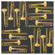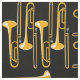 Trombones em um padrão cruzado é um design de instrumento musical único para músicos de baixo nível, professores de música e estudantes em concertos, jazz e bandas marchantes. O tamanho do padrão e a cor do plano de fundo são personalizáveis.