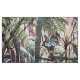 Este belo tecido tropical não repetido, de colheita, foi criado com uma pintura que apresenta um terreno denso de palmeiras e vinhas dentro de uma selva com um céu cor-de-rosa empoeirado no fundo.