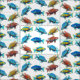 O design original das belas artes de cichlidaes africanas coloridas do pavão tais como Haplochromis Ahli e outro pelo artista Carolyn McFann do estúdio de ronrom de dois gatos imprimiu no tecido da qualidade de sua escolha para fãs tropicais dos peixes do aquário.