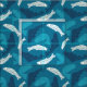 Tecido Truta Azul e De Marfim, Peixe Padrão