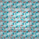Este tecido tem um design atômico moderno do século médio de contornos ovais com pequenos círculos sobre eles e ovais de cor sólida dentro.