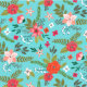 Tecido Turquesa e Coral - Padrão Floral