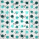 Um padrão retrô inspirado pelo estilo de arte moderna do meio século, com raios solares abstratos em turquesa brilhante e palha escura, e linhas pretas negros ousadas.