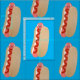 Este cachorro quente engraçado está pronto com ketchup para o almoço! Desenhado no estilo de desenho animado.