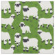 Este tecido é perfeito para fazer presentes para quem cria ou ama ovelhas. Apresenta um padrão de ilustrações de Valais Negros Ovelha em branco e preto contra um fundo verde-claro de grama.
