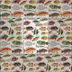 Um padrão criado com ilustrações de peixes de vintage de uma edição de 1930 da Enciclopédia Infantil publicada por Arthur Mee.