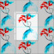 Japonês inspirou flores da ikebana em azul vaso e arte em aquarela vermelha
