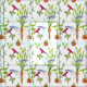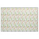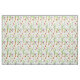 Um tecido com tema de jardim decorado com ilustrações de caneta e tinta de cenouras e tomate com uma libélula azul feita em lápis colorido.