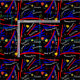 Tecido único de veias vasculares e artérias. Enfermeiro desenhado design com ritmo cardíaco, corações, estetoscópios e nomes comuns de artérias e veias acrescentaram. Design está sobre fundo preto.