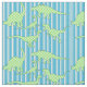 Listras azuis e brancas, com um teste padrão dos dinossauros nele. Os dinossauros são feitos em verde e no branco.