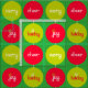 Círculos simples, com padrão vermelho e verde, bolas de Natal penduradas com palavras festivas, alegria e feliz festivas. Ideal para projetos de costura de Natal.