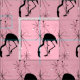 O Moderno Flamingo Moderno do MidCentury Flamingo Repetitivo tecido de Padrão para todos os seus projetos de costura de temas da praia retrorada. Silhueta flamingo preta sobre um fundo rosa pálido e pastel repleto de elementos design de explosão atômica inspirada no século médio.