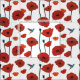 Flores das papoilas e tecido vermelhos do teste padrão do colibri.