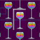 Um vidro de vinho brilhantemente colorido encheu-se com um arco-íris do vintage do divertimento do vino, sparkling para fora bolhas do coração em uma homenagem contemporânea à adega. Design perfeito do partido para alguma happy hour ou celebração do cocktail.