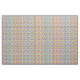 Este tecido tem um design moderno século médio de uma grade de linhas pretas com quadrados e retângulos em cores retrorativas em um campo de branco.