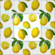 Tecido em impressão de limões espalhados e folhas baseadas em elementos de arte botânica safra, melhorada digitalmente