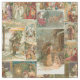 Elegante colagem de férias vintage, muito detalhada e intrincada, apresentando um padrão ininterrupto de cartas vitorianas restauradas com cenas do Pai Natal na neve, com crianças, anjos e no seu trenó com realces de ouro e prata e embelezamentos.