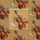 Tecido Violino e arco com notas e estrelas