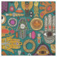 Padrão ilustrado de talismã, originalmente desenhado a tinta. Possui vários objetos que se acreditava serem bons afortunados, saudações e felicidade. Talisman, amuleto, sorte, olho-mau, hamsa, magia, raposa, fênix, assustador, yin e yang, joias, joias, charme, ilustração, joia, metal, verde-viridian